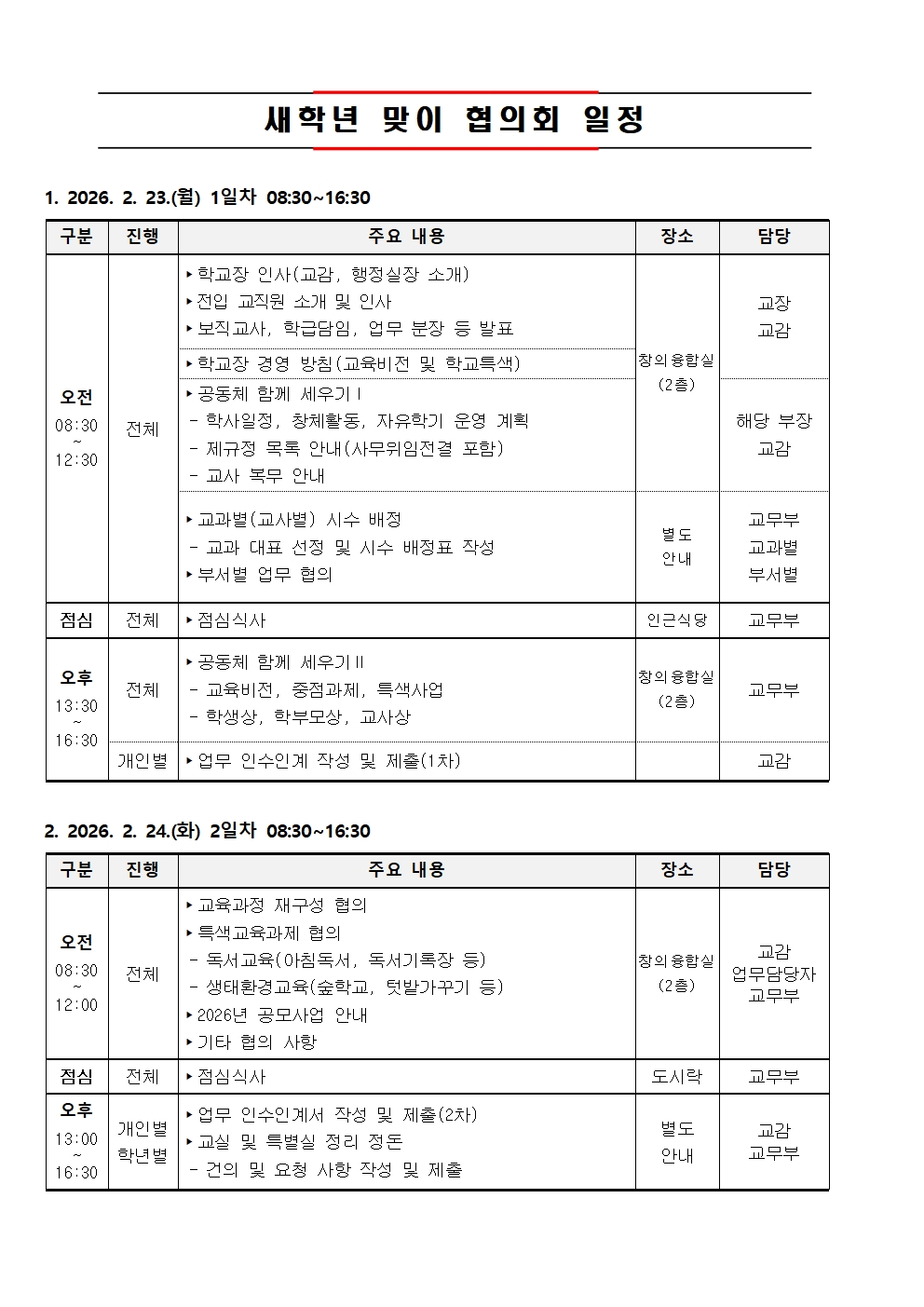 2026학년도 새 학년 맞이 「교육과정 함께 세움 주간 」을 아래와 같이 실시하니, 협조하여 주시기 바랍니다.